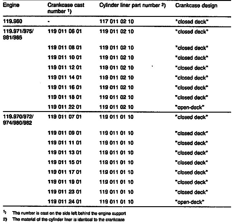 Refer to the above table to locate the correct replacement liner for specific cylinder block.