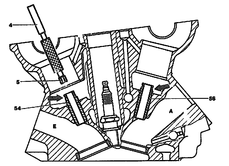 - Check with correct gauging drift (4), inlet and/or exhaust valve guide (54) and (56) in longitudinal and transverse direction.