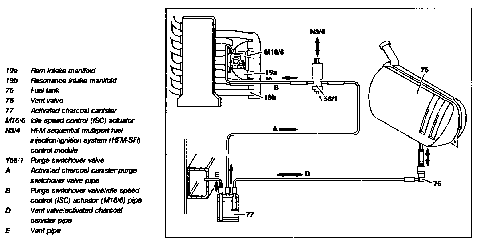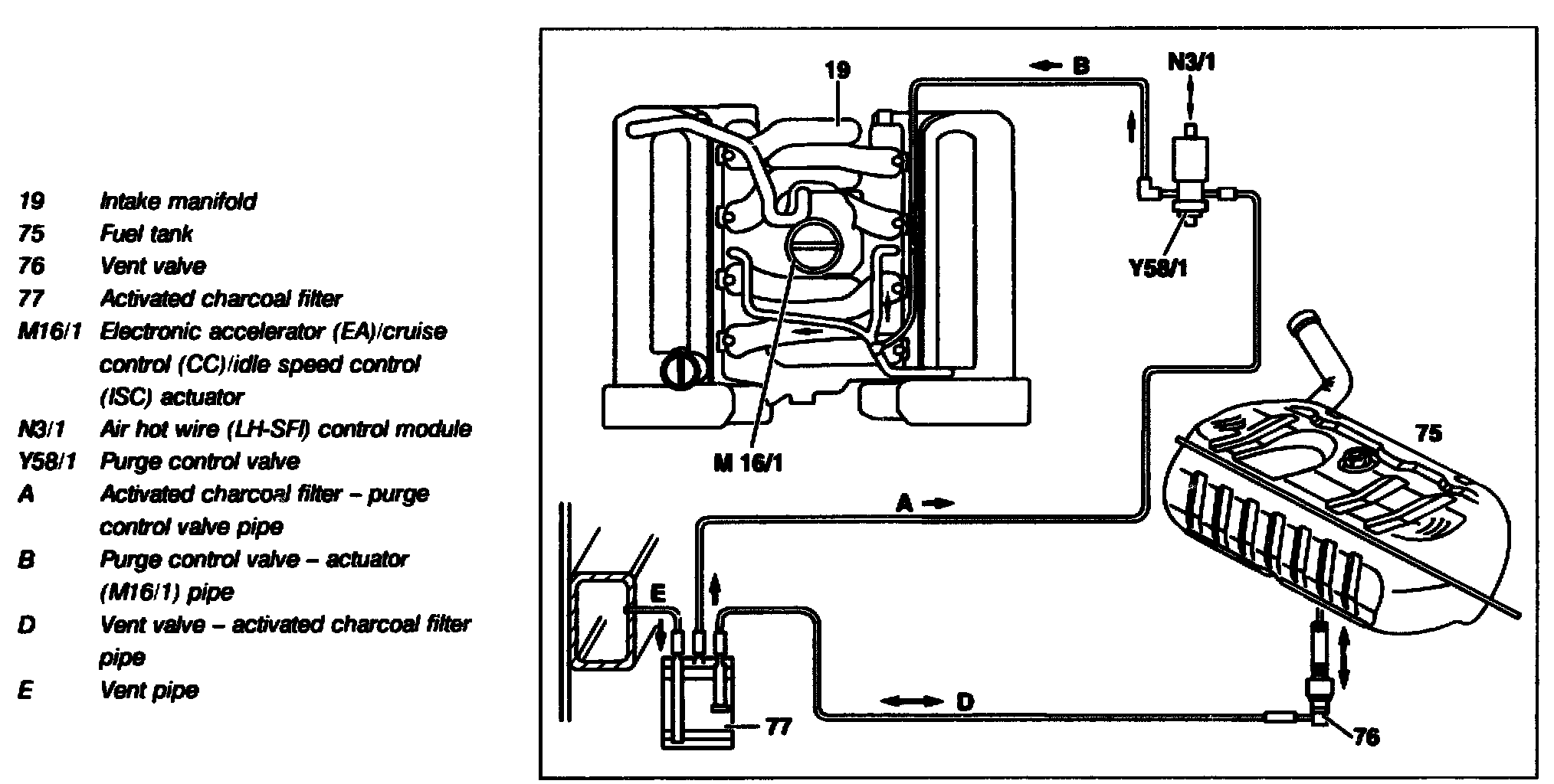 Connection diagram of LH-SFI evaporative emission control system model 124 with engine 119.97