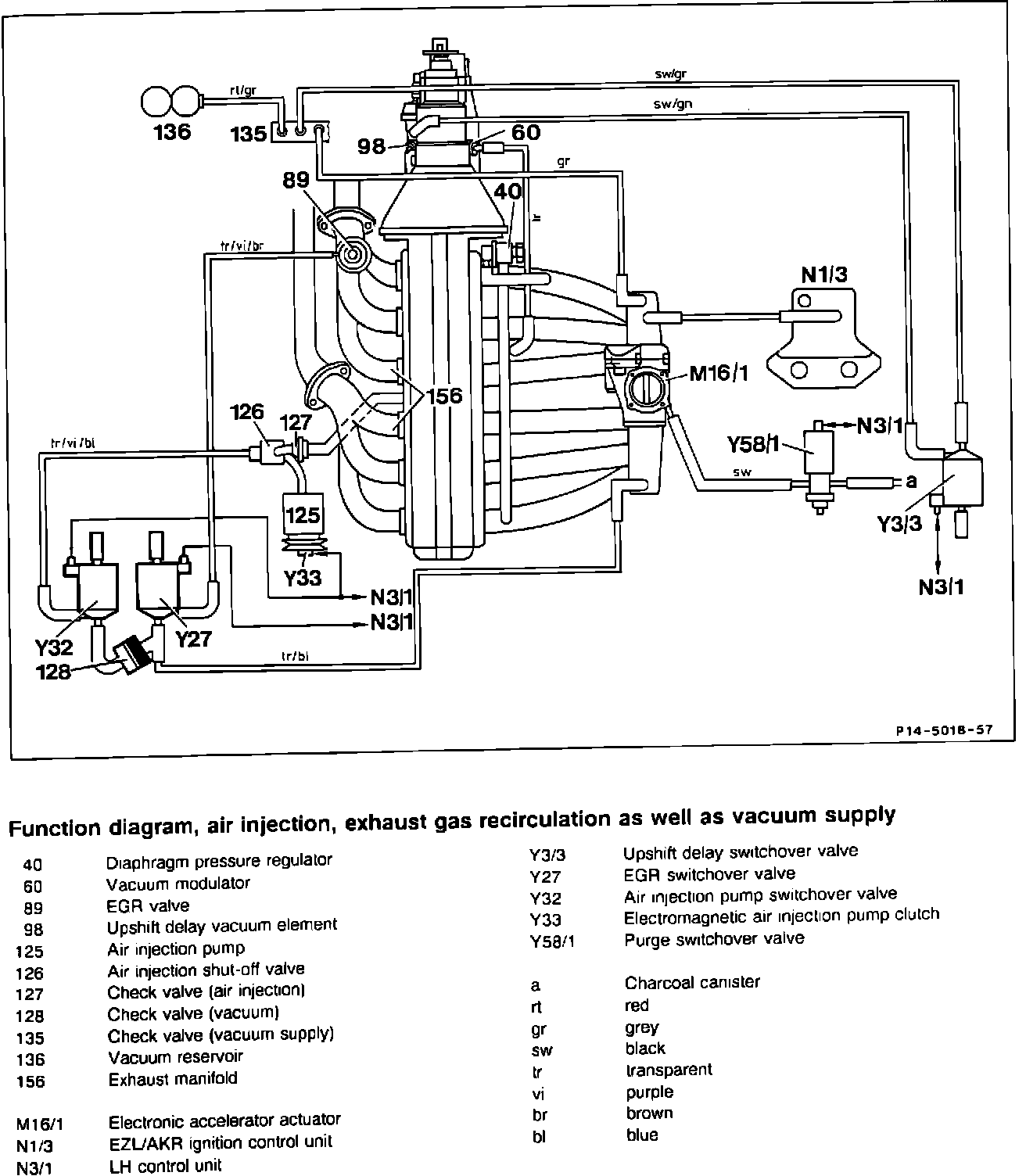 The switch-over valve is activated (by the LH control unit) at coolant temperatures above 65 °C (149 °F) and only if the engine is between the idle and full load condition. When the valve opens, intake manifold vacuum reaches the EGR valve and opens it. Some exhaust gases now flow from the exhaust manifold back into the intake manifold.