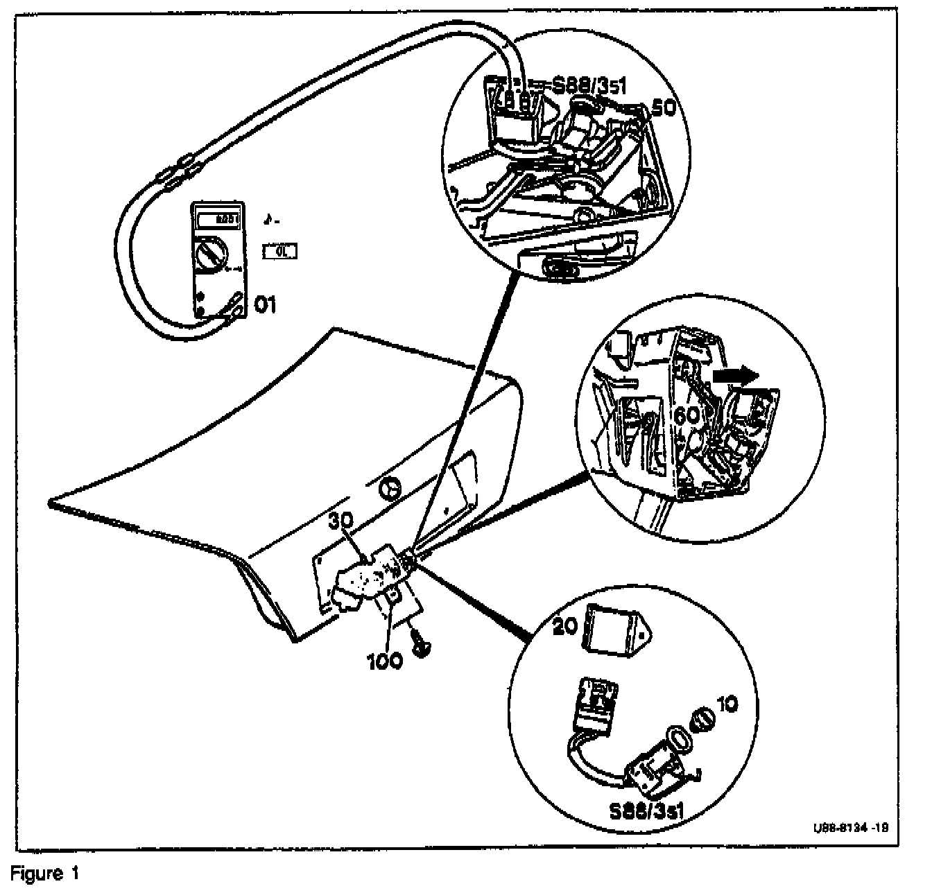 3. Move switch S88/3s1 towards actuating lever (50, Figure 1) until acoustic continuity signal is emitted by the multimeter.