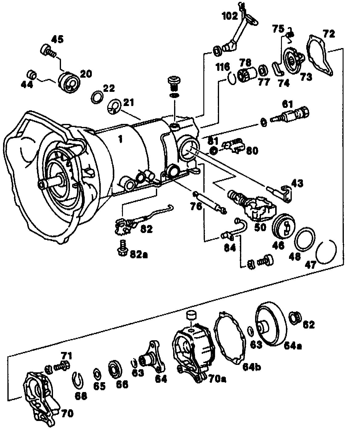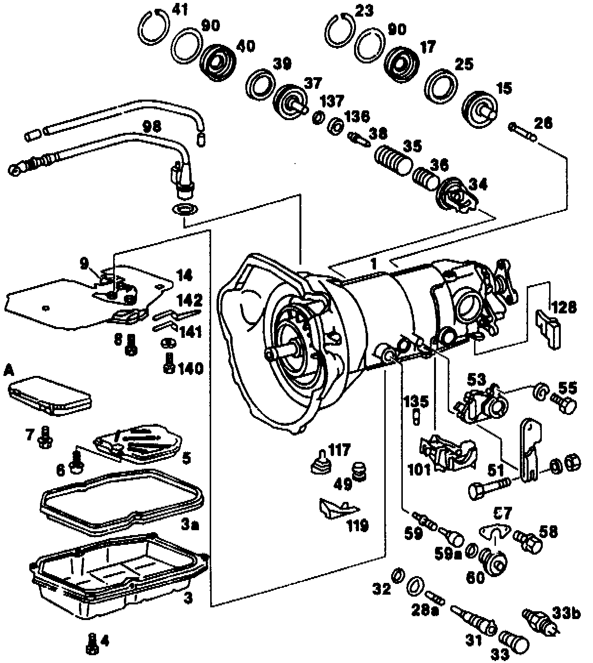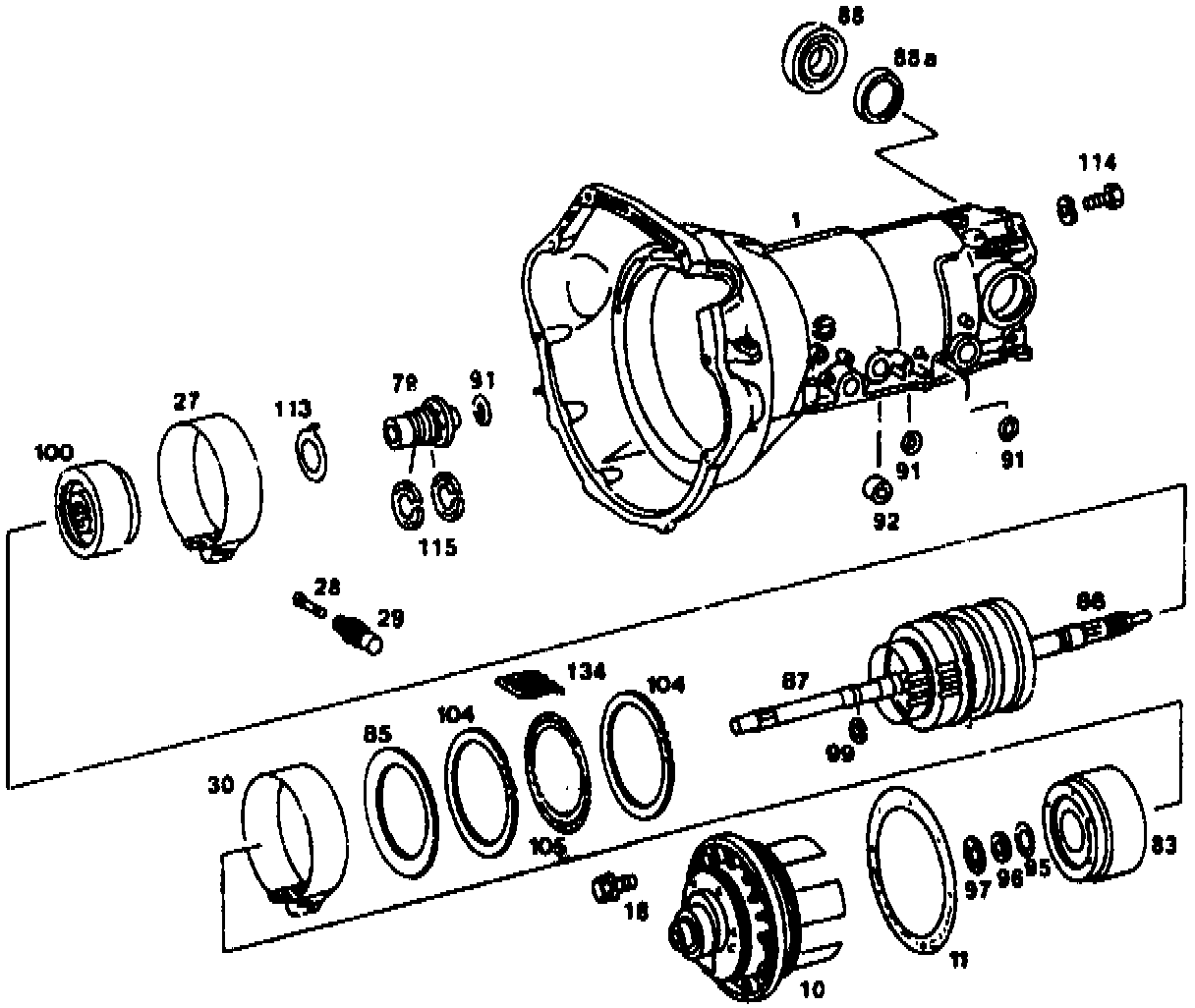 NOTE: As of transmission no. 3 991 611, use of disk spring (85) with increased stroke.