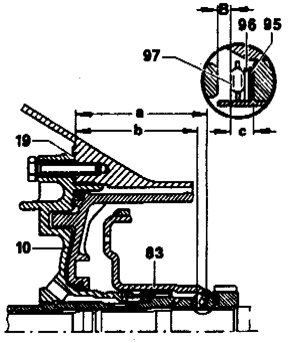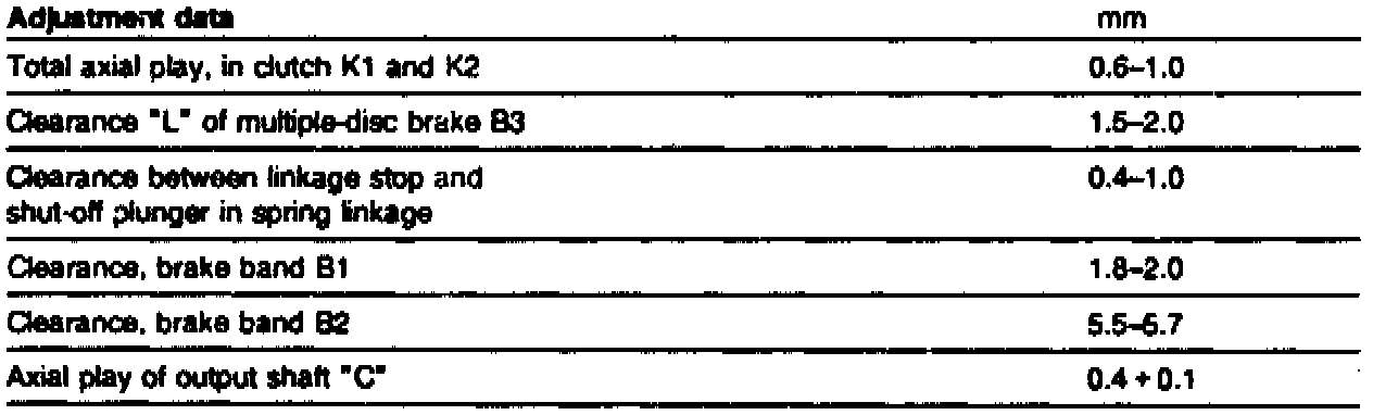 Distances "b" and "c" subtracted from distance "a" equal the axial play "B" of clutch K1. The axial play can be adjusted by inserting appropriate shims (95, thickness 0.1, 0.2, 0.5 mm).