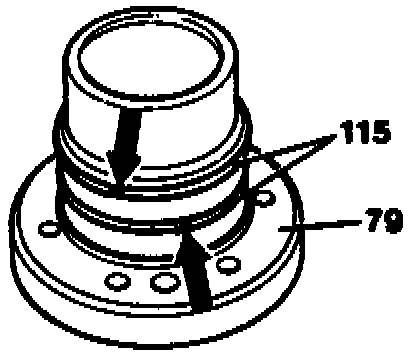 Remove, install. Bolts (114) 11 Nm. Stick teflon rings (115) into groove with grease (items 54, 60 - 62).