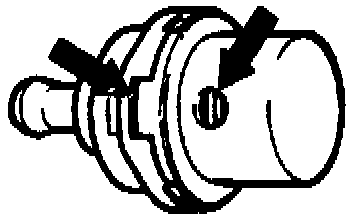 64. Check thrust element B2 for twisting. With the thrust element removed, the bore and tab (arrows) must align. With the thrust element installed, one spring winding of the thrust element must be visible through the bore for the lower cover oil pipe.