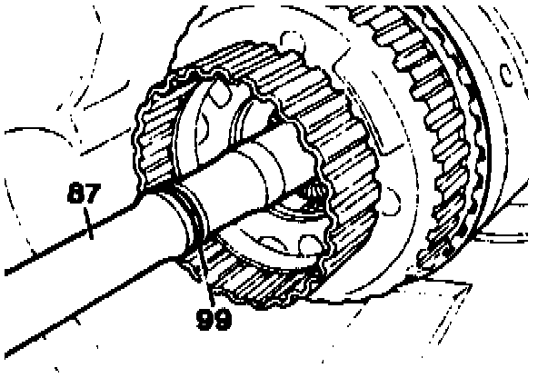 77. Coat groove in driveshaft (87) with grease. Insert lubricating pressure ring (99) and push into groove so that the gap remains closed.