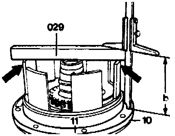 Place parallel-edged block (029) on the machined surface and measure depth to outside edge of spring seat (85) using a depth gauge.