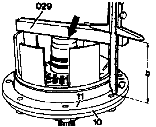Place parallel-edged block (029) on plunger of multiple-disc brake (arrows) and measure depth to gasket (11) using a depth gauge. The clearance "L" is the difference between the two measurement. Adjust dearance "L" to its specified value of 1.5 - 2.0 mm. Variations can be compensated by means of the outer multiple-discs available in different thicknesses (133a illustration item 75).