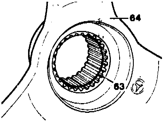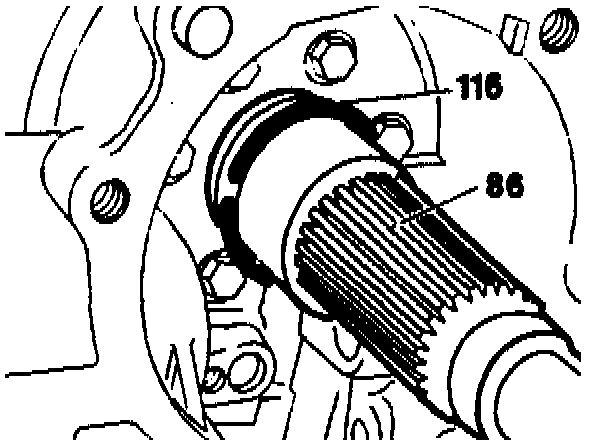 87. Rotate assembly device until output shaft (86) points upwards. Push snap ring (116) along output shaft as far as its groove.