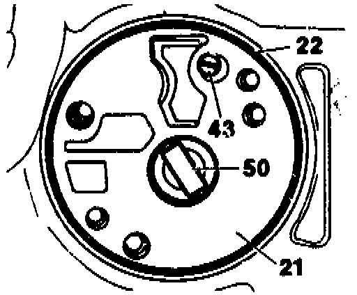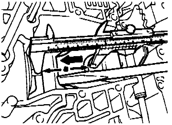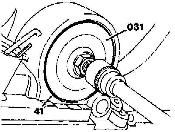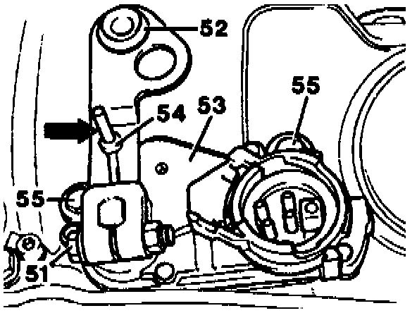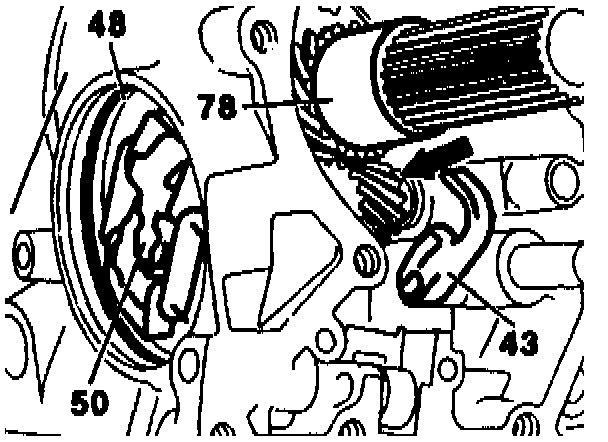 92. Swivel axial retainer (43) towards centrifugal governor (50) so that it engages in the groove in the governor shaft (arrow).