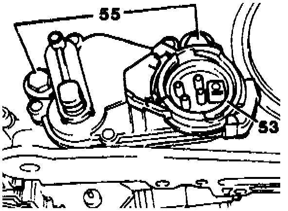 135. Move range selector lever (52) to position "N", insert a 4 mm cotter pin (arrow) through the range selector lever into the locating bore of the shift housing and tighten hexagon bolts (55) to 8 Nm. Then remove cotter pin.