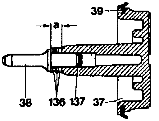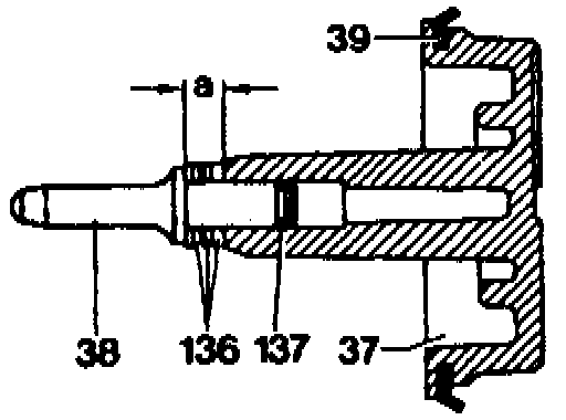 The clearance can be adjusted by inserting or removing shims (136) in the pressure pin (38).