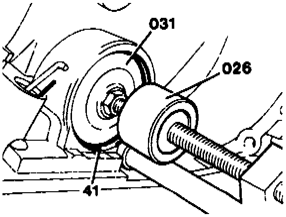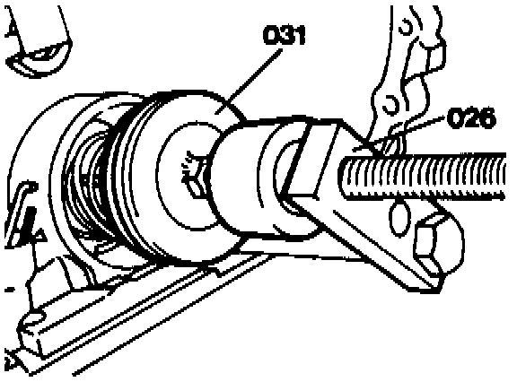 118. Screw in spindle of assembly device (026) ensuring that pressure pin of brake band plunger B1 is inserted in brake band and that lip seal is not damaged.