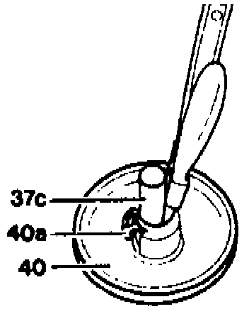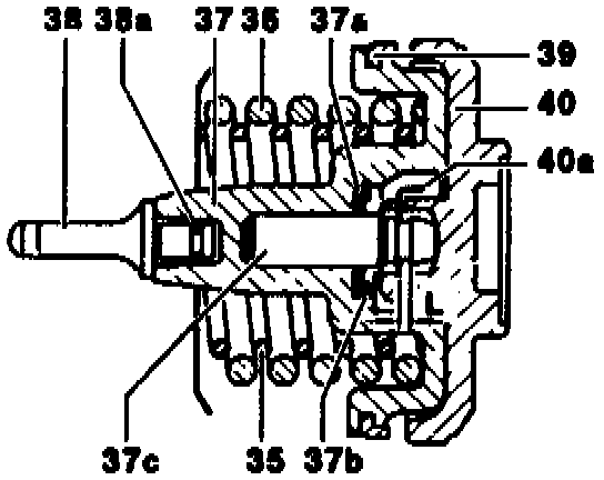 Remove brake band plunger from plunger cover. Spread locking device (40a) in brake bend plunger cover (40) using circlip pliers and remove pin (37c). Leave the locking device in the brake band plunger cover. Remove snap ring (illustration 3, item 37b) in brake band plunger using a screwdriver; then remove disk spring.