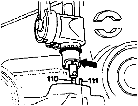 139. Check O-ring on control pressure cable and renew if necessary, then attach control pressure cable onto connecting rod (110). Insert limiting rod (111) into bore (arrow) and insert control pressure cable.
