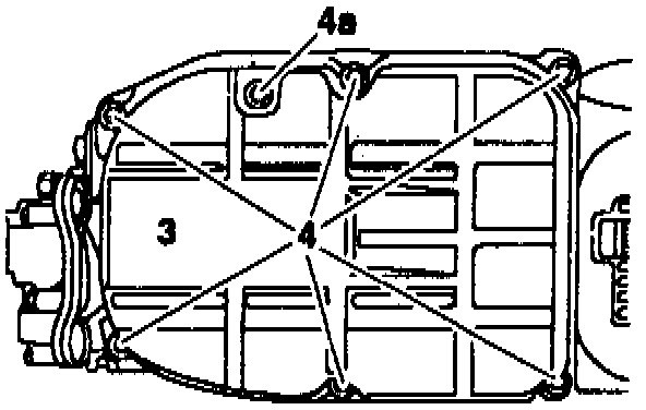 142. Attach oil pan (3) and tighten retaining bolts (4) to 8 Nm.