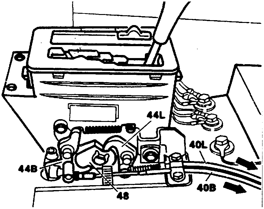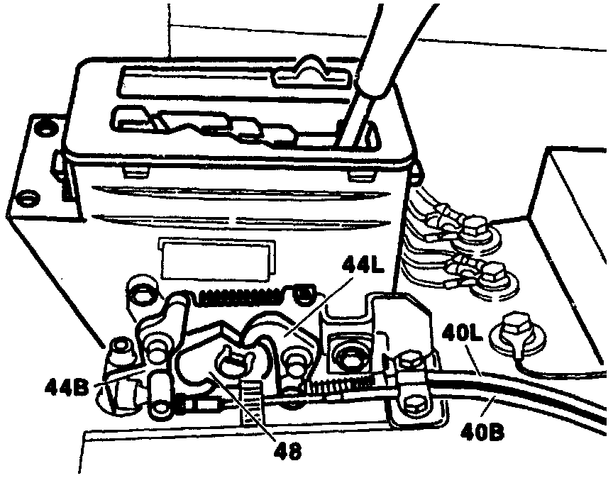 ADJUSTING AND CHECKING PARKING LOCK40B Brake pedal cable