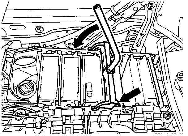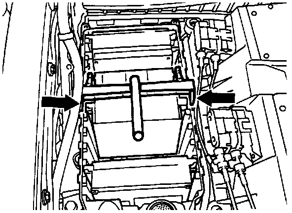 2. If necessary, press control unit completely in with special tool by placing special tool on the module box frame under the ribs (arrow). Carefully move special tool in direction of arrow until resistance can be felt when control unit is fully engaged in connector.