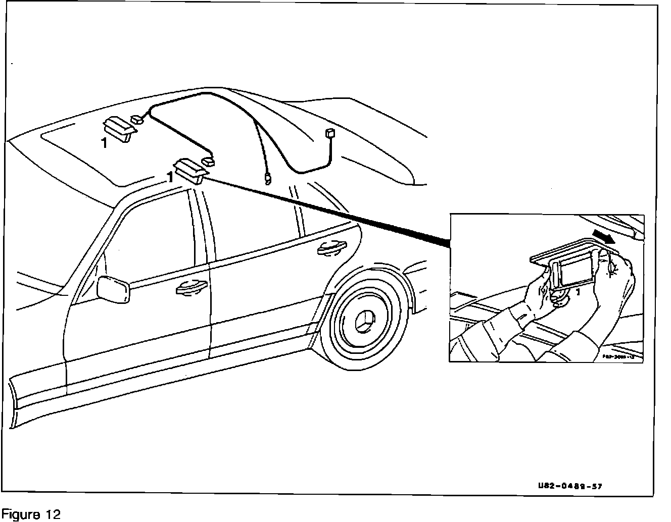 1. Push vanity mirror assembly forward (arrow, Figure 12) to compress spring clips, and disengage mirror assembly.