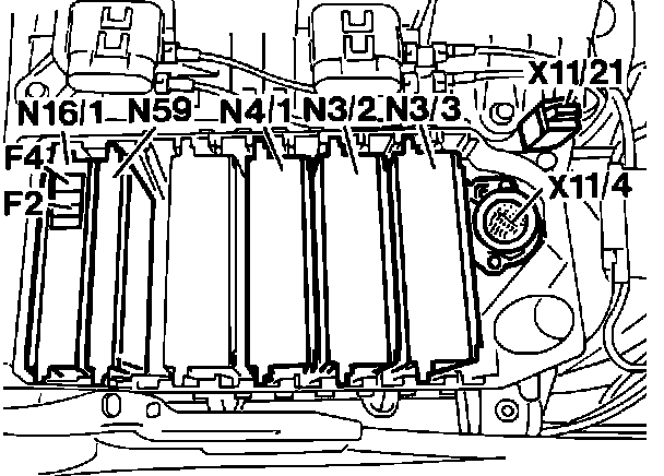 The control module for the right cylinder (1-6) bank (N3/3) is located in the module box in engine compartment, passenger side firewall. The control module connector is color coded dark green/light green.