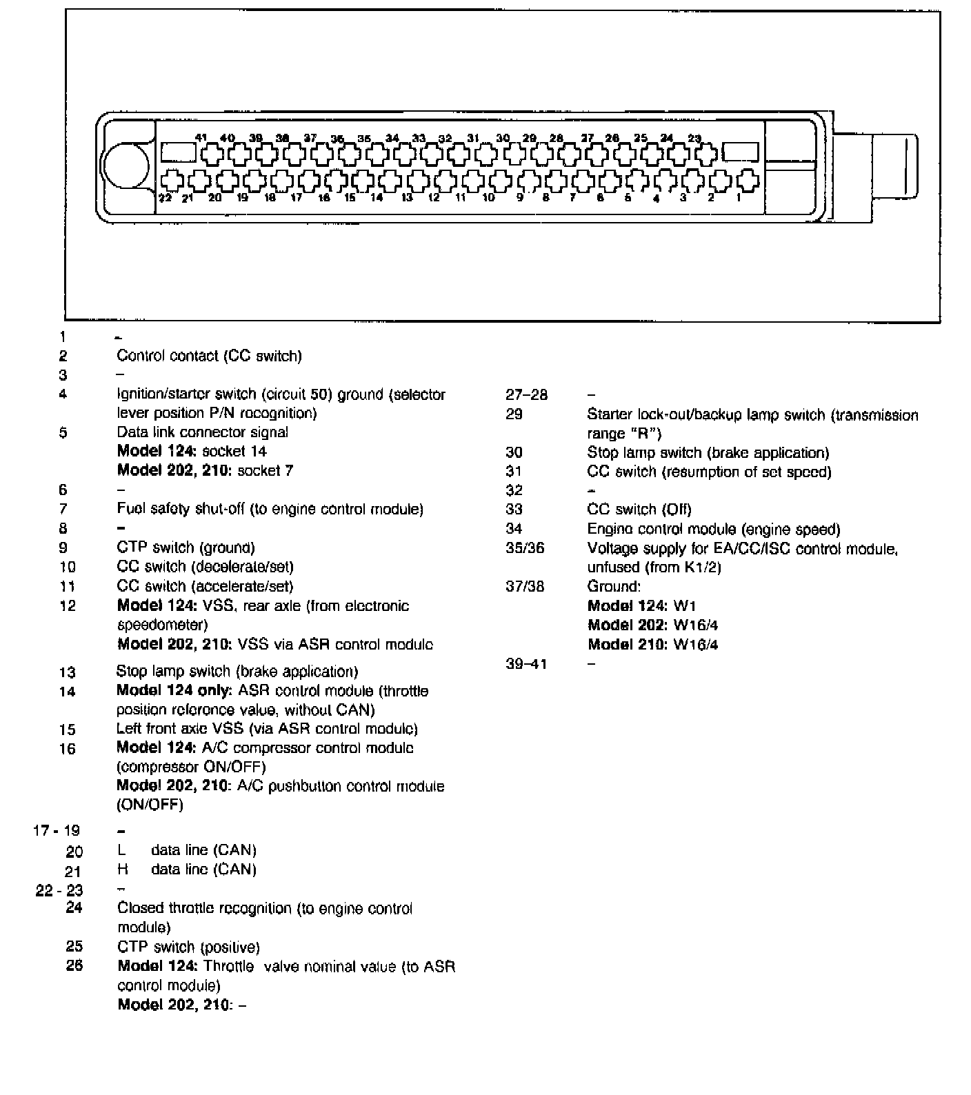 - Figure 4 = Connector 1, Models 124, 202, 210