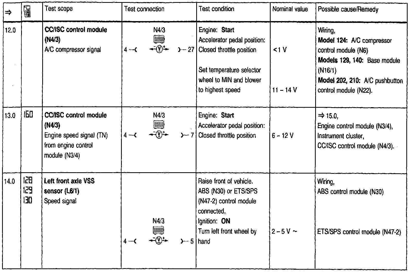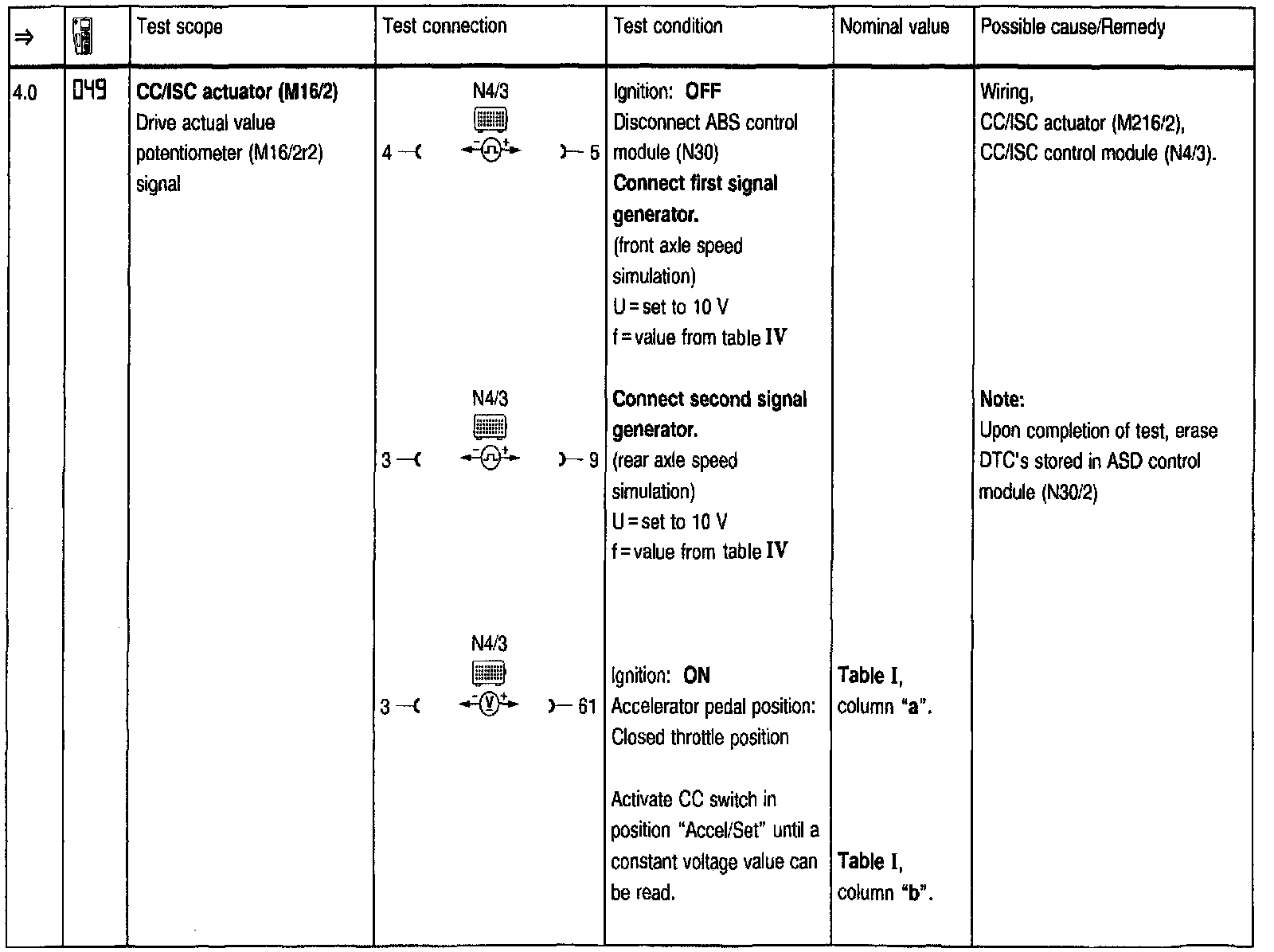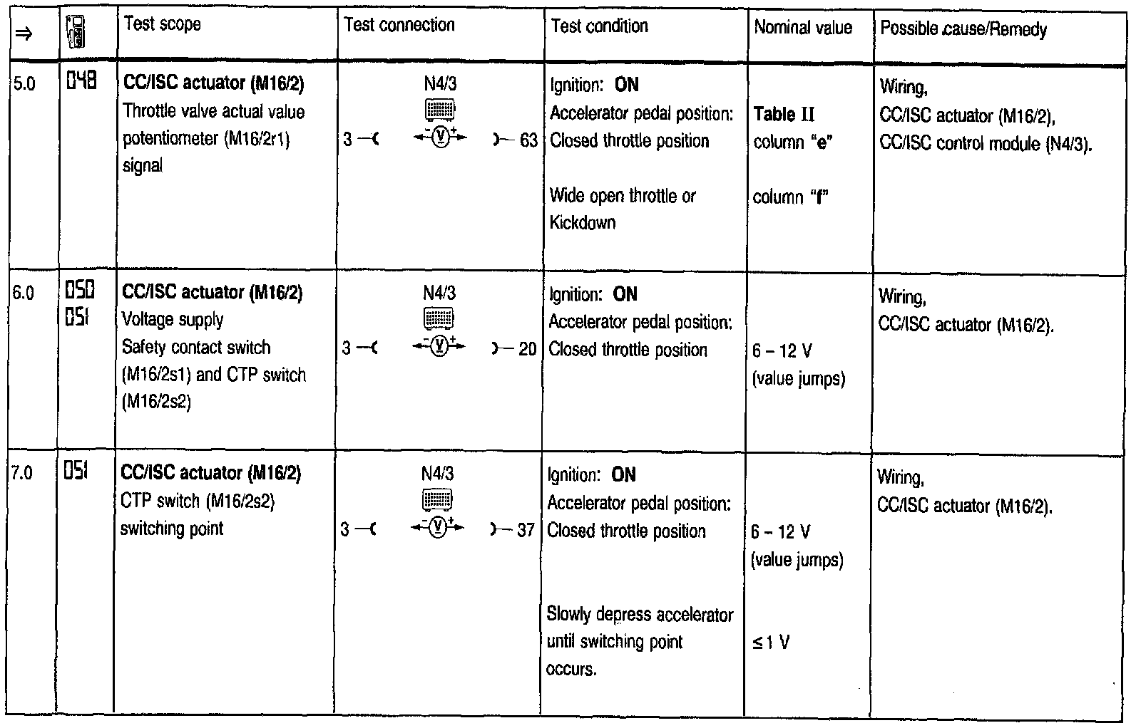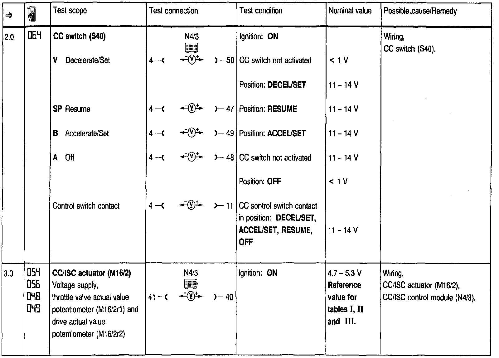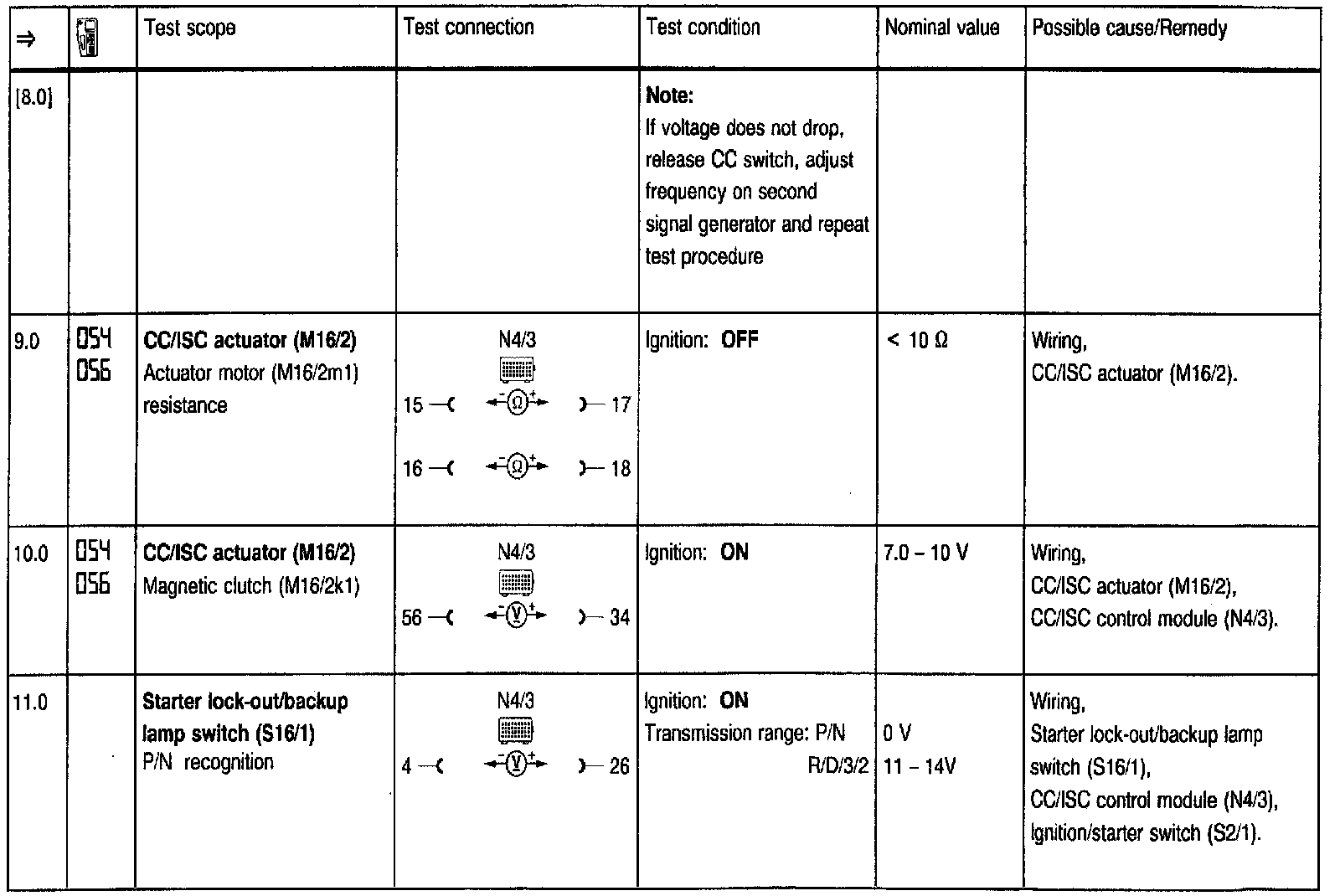 Test Steps (=>) for Cruise Control/Idle Speed Control (CC/ISC)