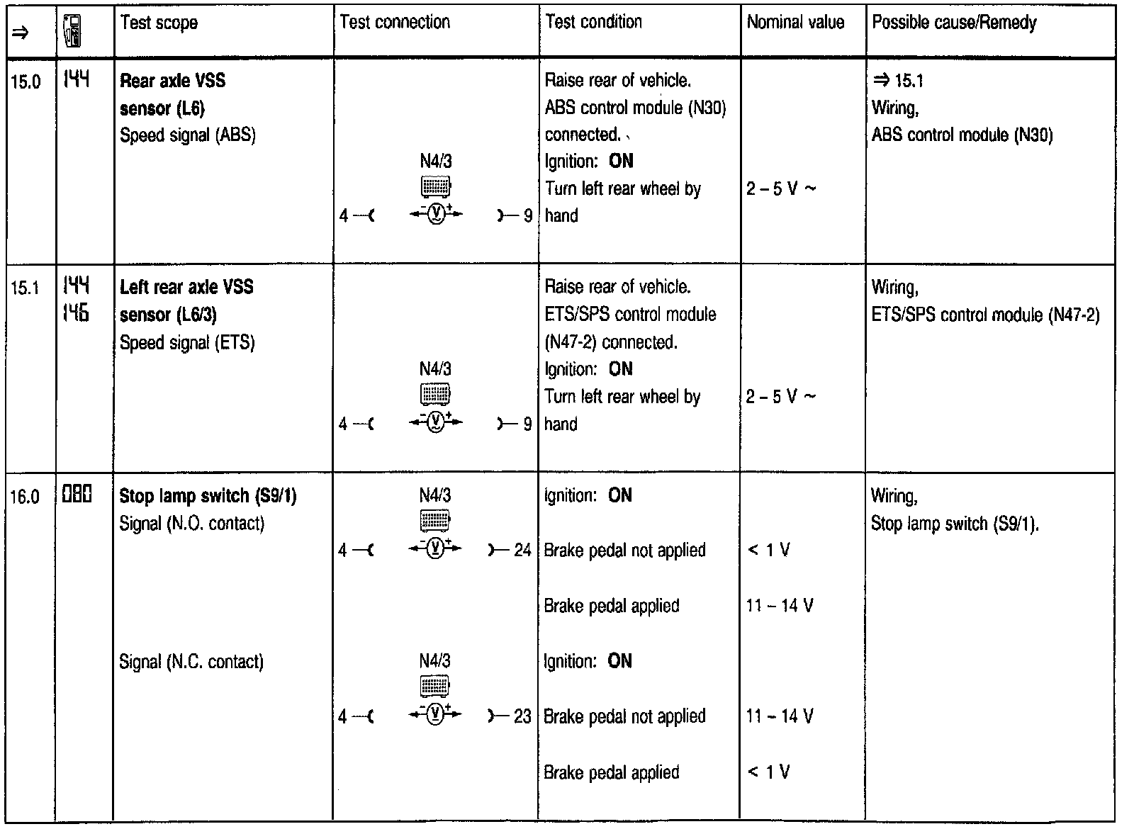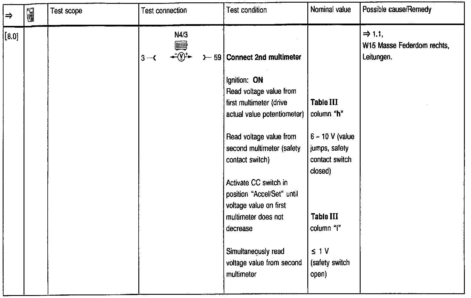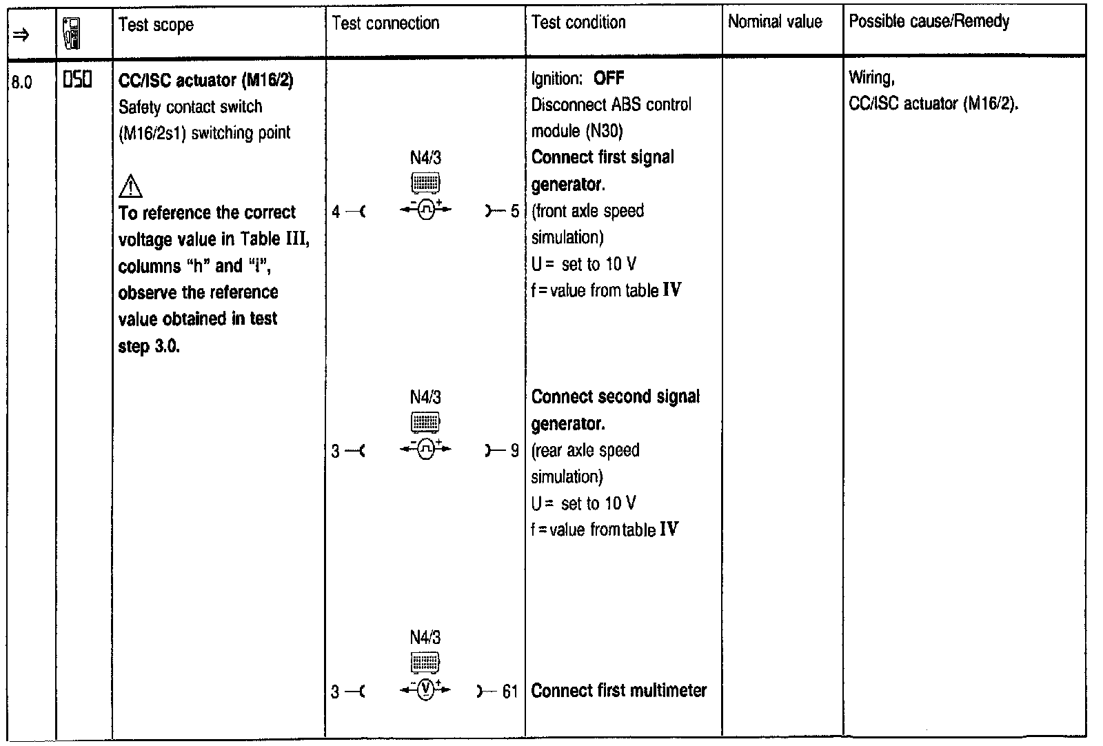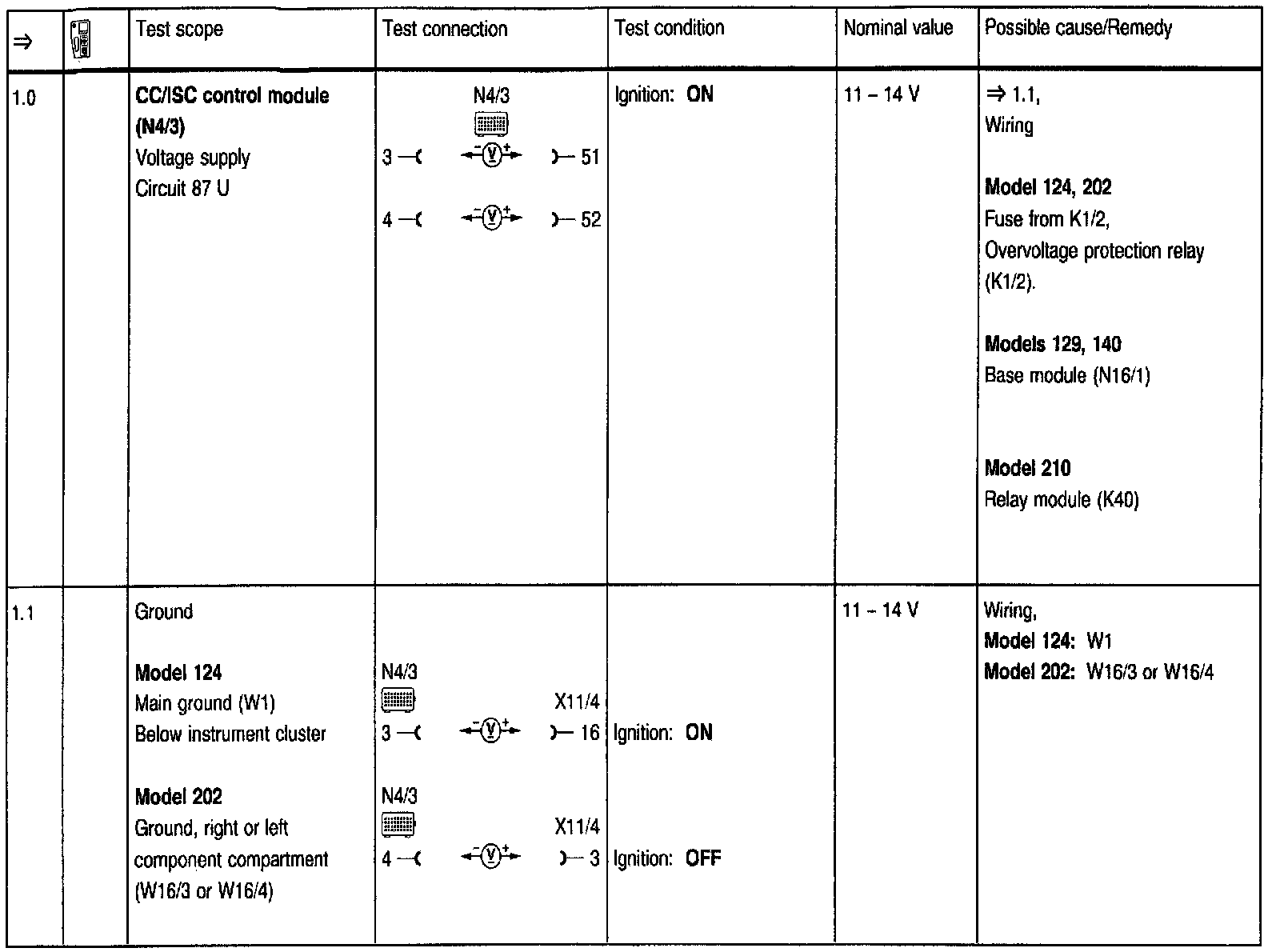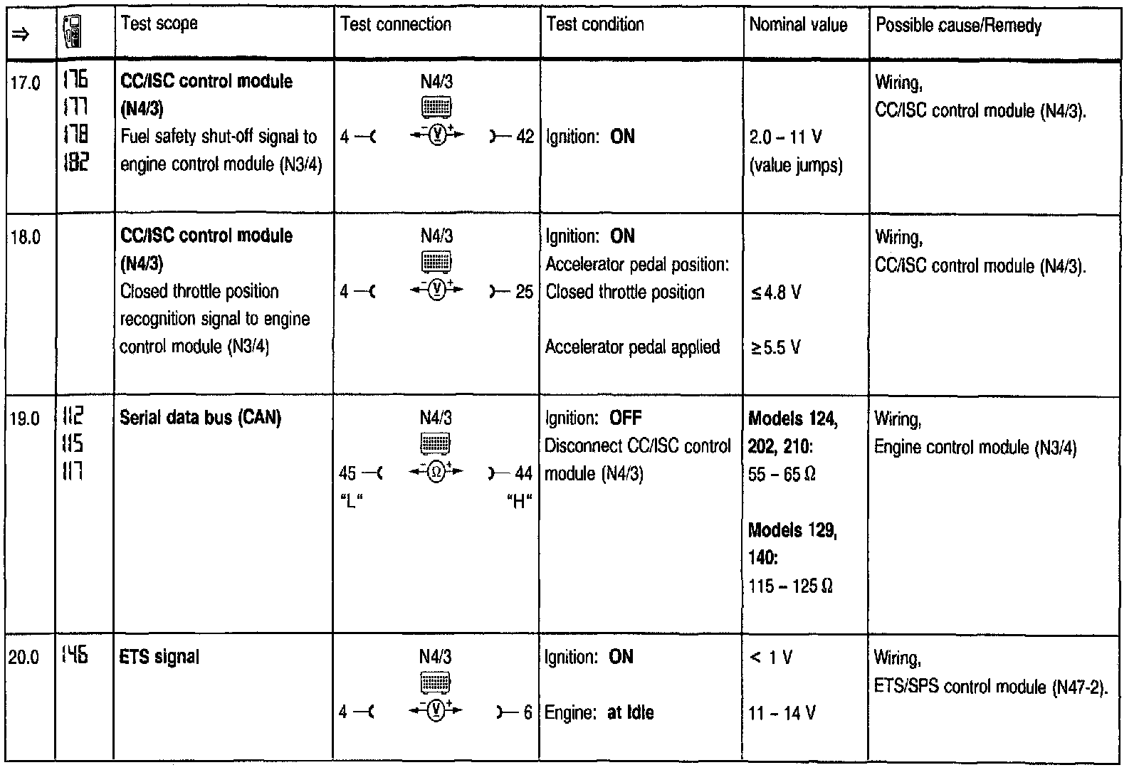 Test Steps (=>) for Cruise Control/Idle Speed Control (CC/ISC)