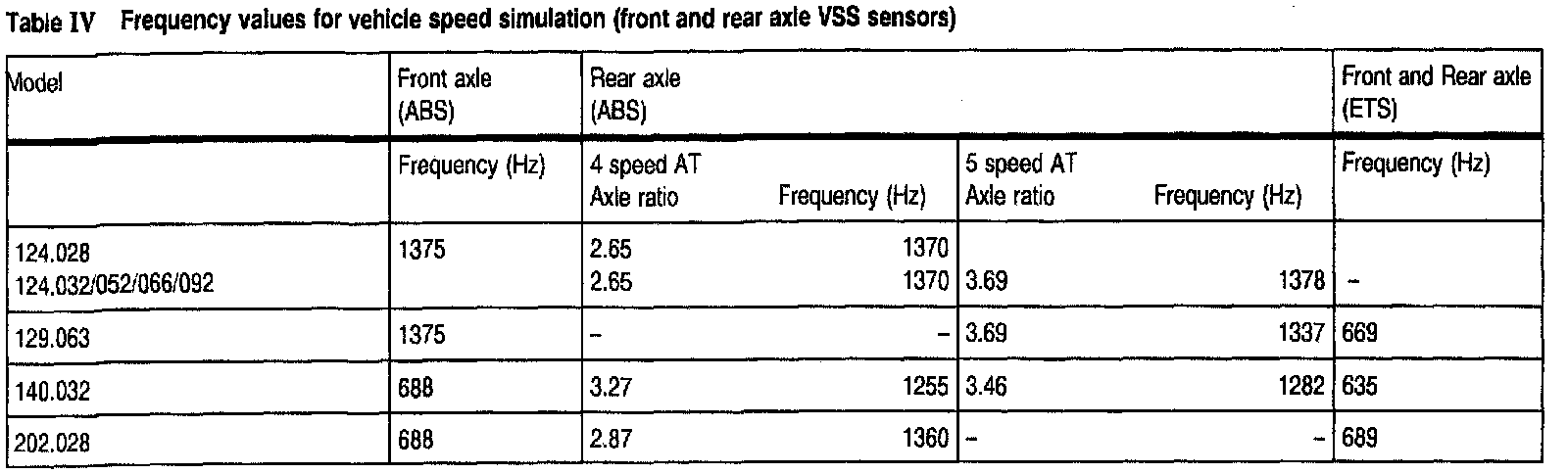 Table IV: