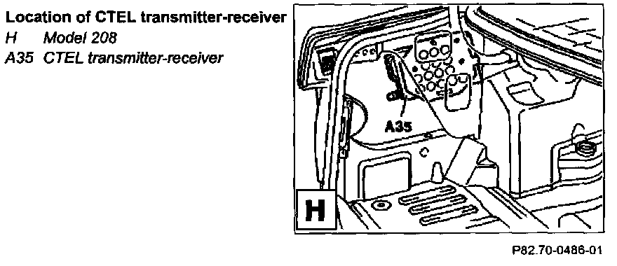 6 Press back tensioning spring (arrow) on bracket and pull out CTEL transmitter-receiver (A35)