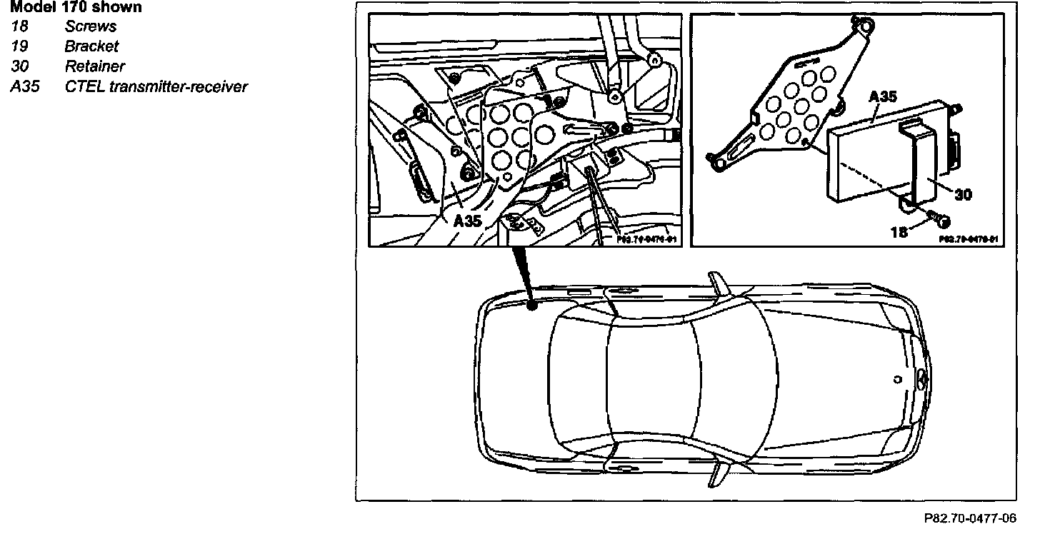 8 Unscrew screws (18) and remove retainer (30) with CTEL transmitter-receiver (A35)