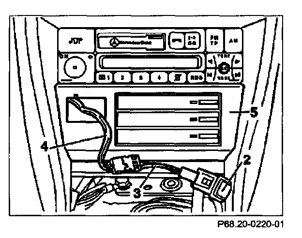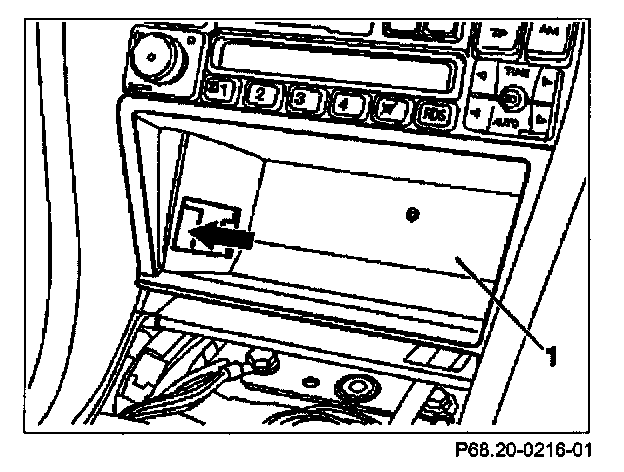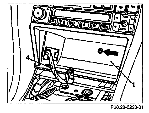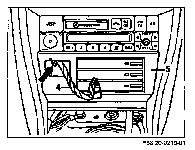5. Insert cassette box (5) in center console and fasten with existing screw (4, 8 X 16) (arrow).