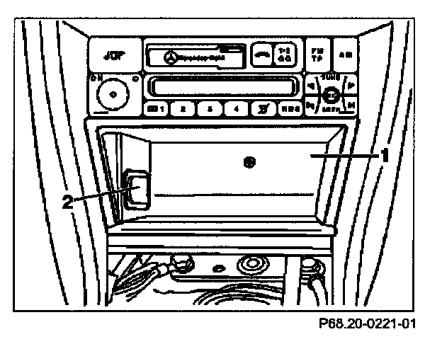 10. Install 12 volt socket (2) in oddments tray (1) and lock in position.