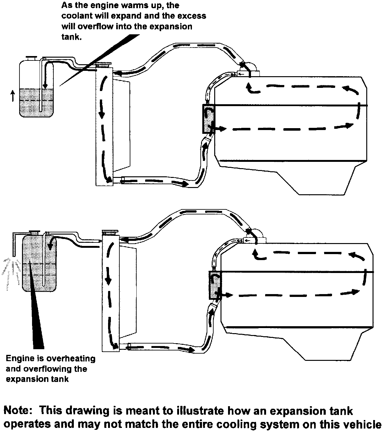 - Re-check expansion tank level. If coolant begins to bubble into the expansion tank after turning off the engine, pressure check the radiator cap and verify it will hold the rated pressure.
