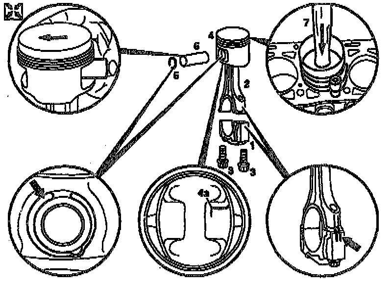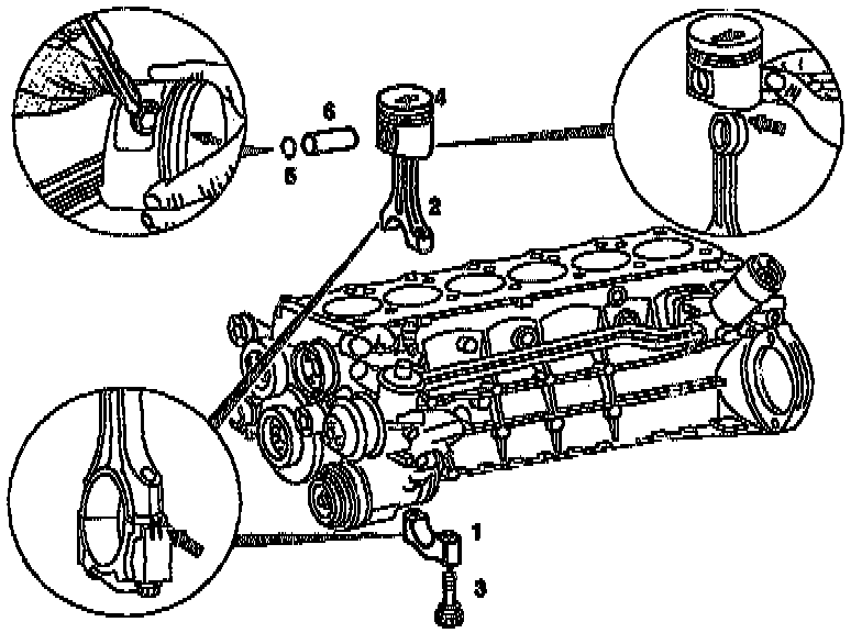 6. Remove conrod (2) with piston (4) upward.