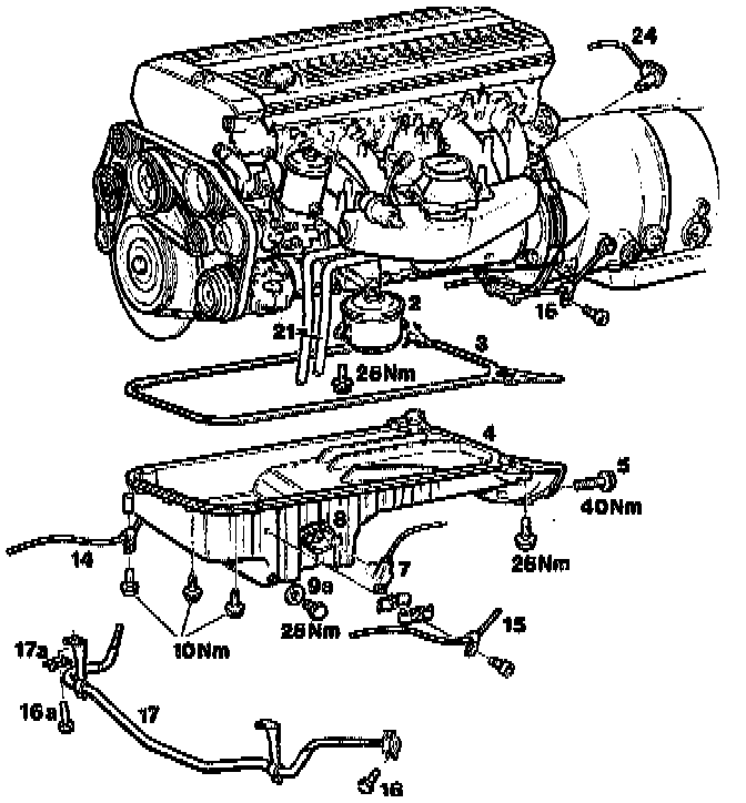 11. Unscrew engine oil cooler pipes from oil pan.