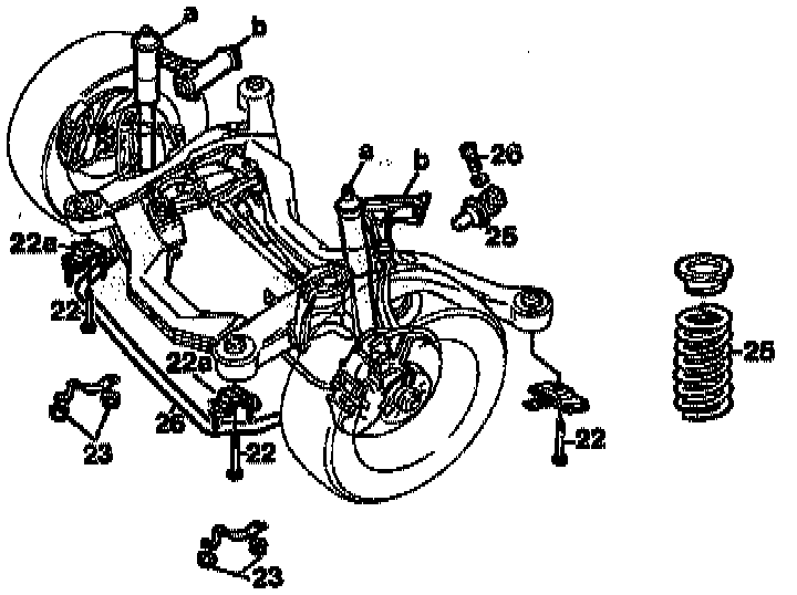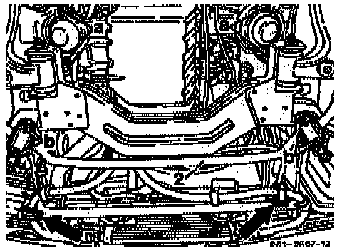 21. Lower front axle until it is hanging clear at the shock absorbers and at the top control arms.