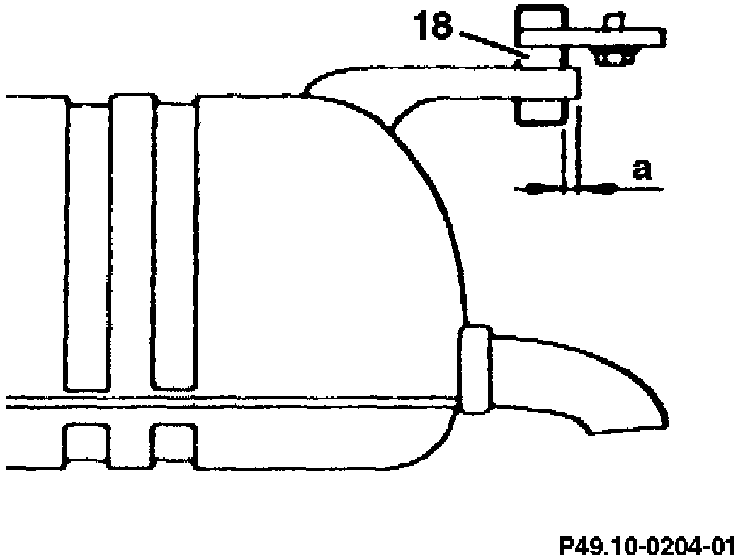 NOTE: When attaching the exhaust system, ensure that the projection "a" of the bracket at the rear muffler is not more than 3 - 5 mm at the rubber mount (18) when exhaust is cold.