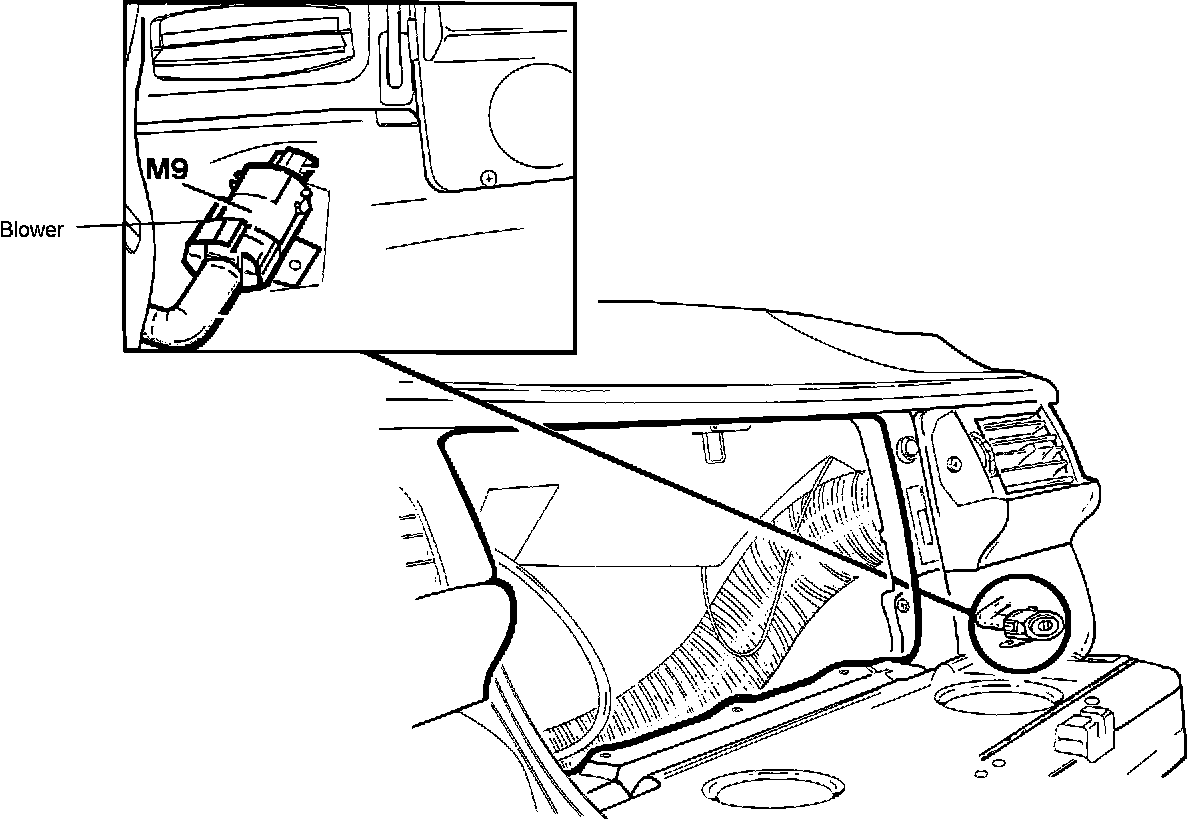 The aspirator blower is located behind the right side dash panel air outlet.