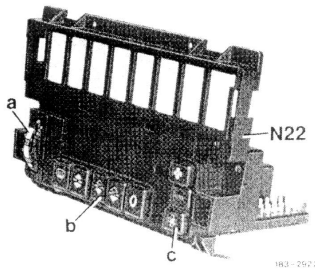 This consists of a temperature selector wheel (a). pushbutton switch (b) with five pushbuttons and the blower switch (c).