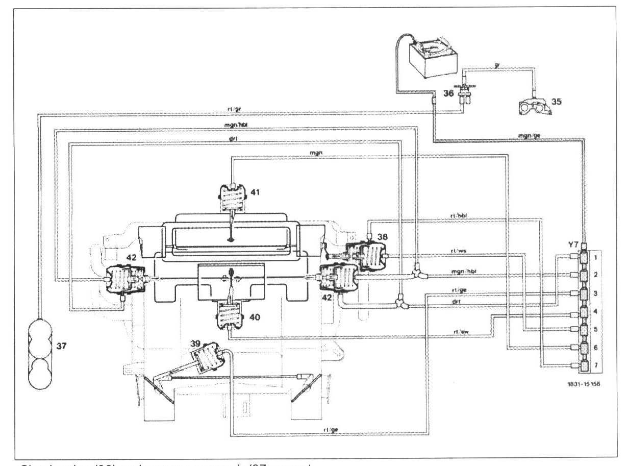 Vacuum circuit 4, vacuum element for center nozzle flap (40) for diverter air flap (41) and for defroster nozzle flaps (38)