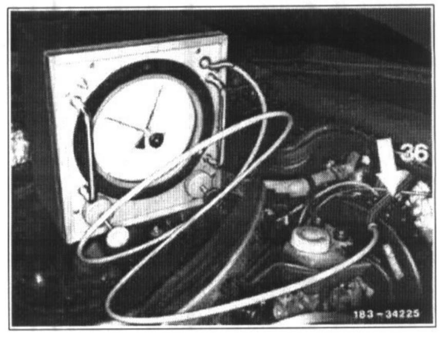 1 Pull vacuum line medium green/yellow off check valve (36) and connect tester to the vacuum line.