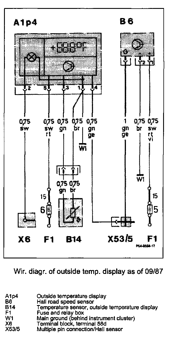 - As of 09/87, the outside temperature display analyzes the road speed signal from the Hall sensor.