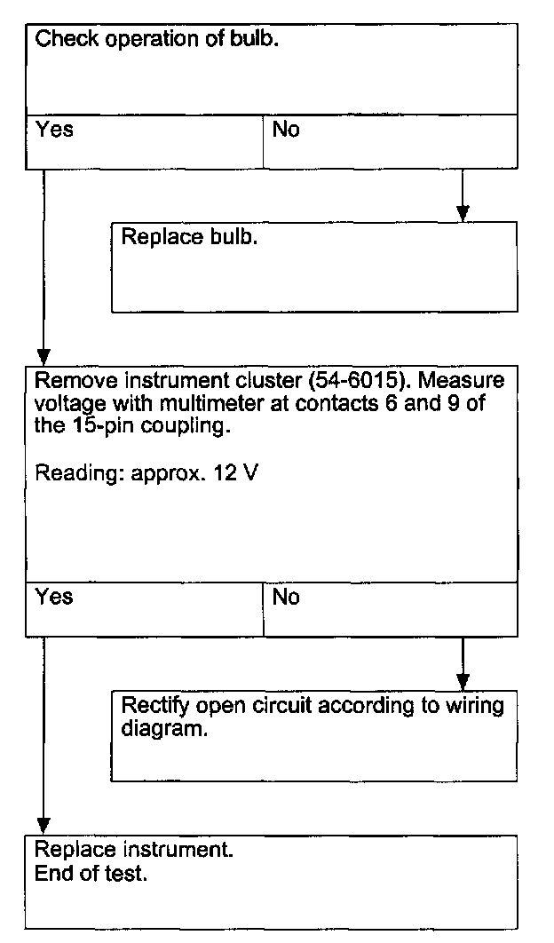B. Indicator lamp does not light up when ignition key in position "2".