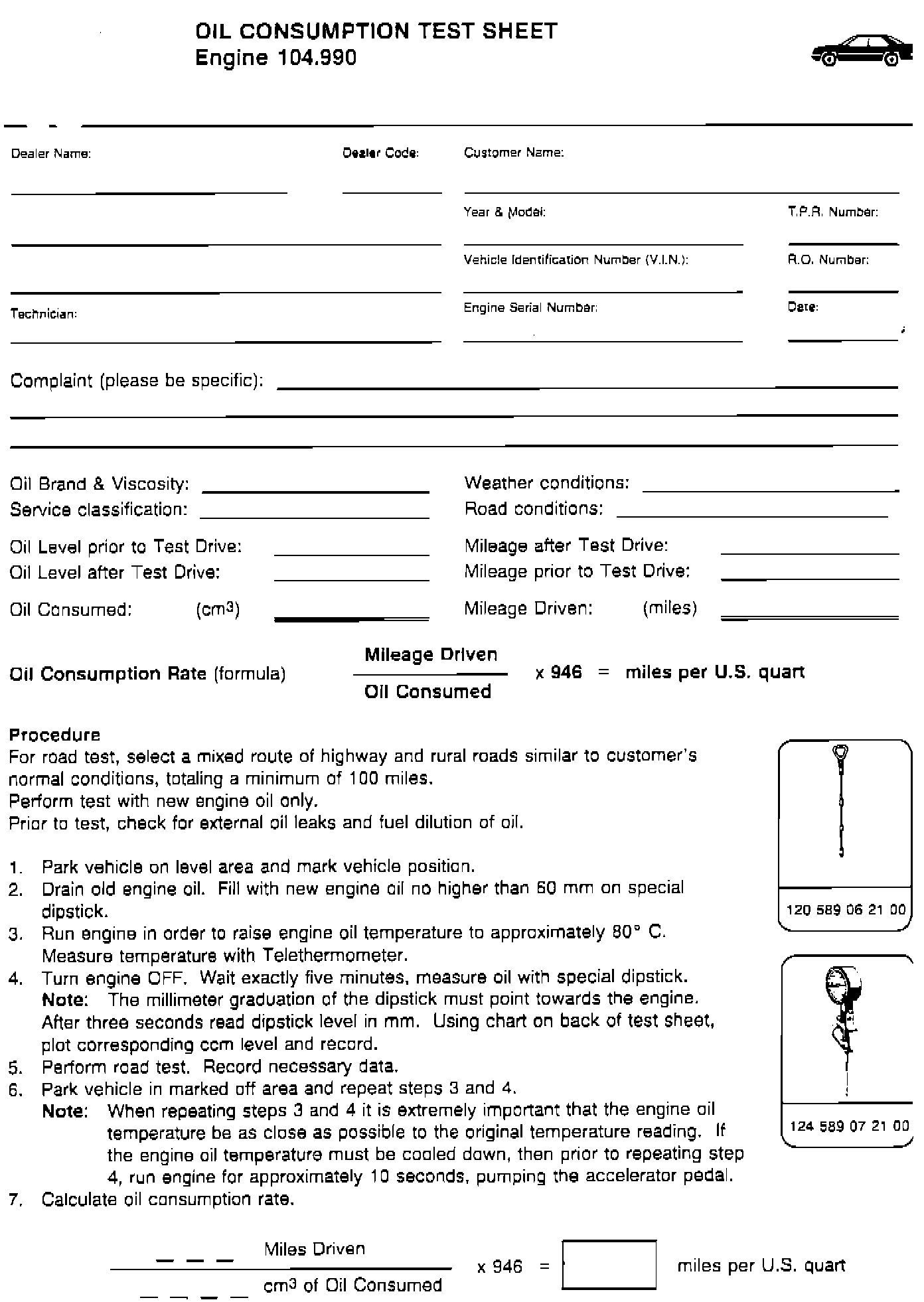 Oil - Engine Oil Test Sheets for Measuring Consumption