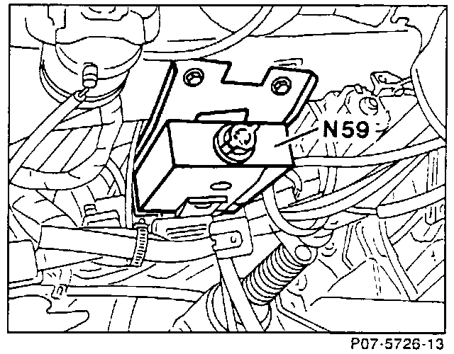 The diagnostic module (N59) is located under the dashboard to the left of the steering column. Voltage is supplied from the overvoltage protection relay module (K1/2). The diagnostic module monitors emissions-related signals and systems, and in cases of malfunction, illuminates the CHECK ENGINE malfunction indicator lamp in the instrument cluster. Simultaneously, a diagnostic trouble code (DTC) is stored in the diagnostic module's memory.