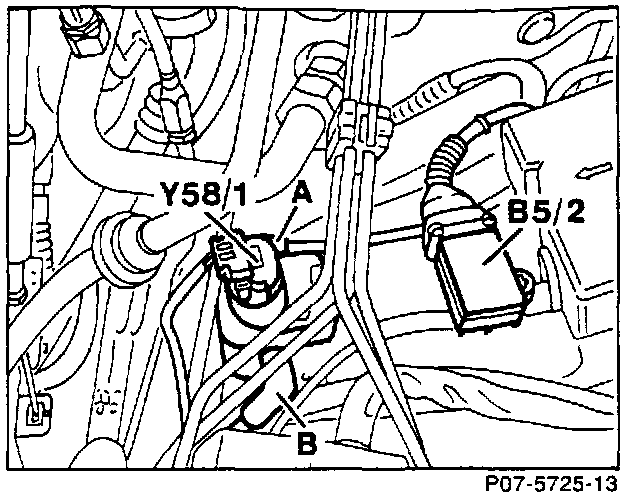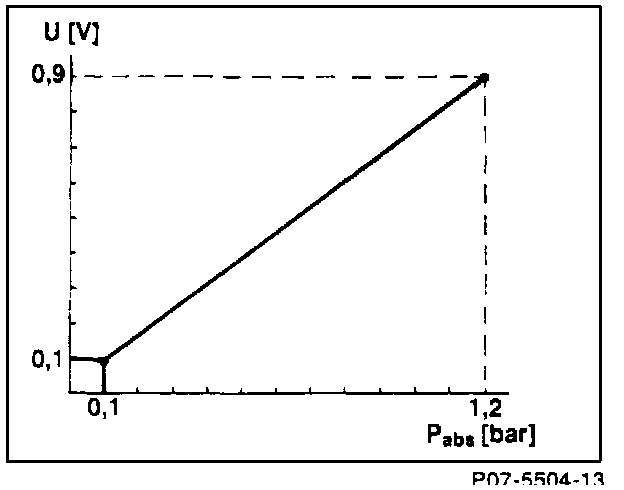 The diagnostic module pressure sensor (B5/2) senses absolute pressure in the intake manifold, converts the pressure value into a voltage signal and sends it to the diagnostic module.