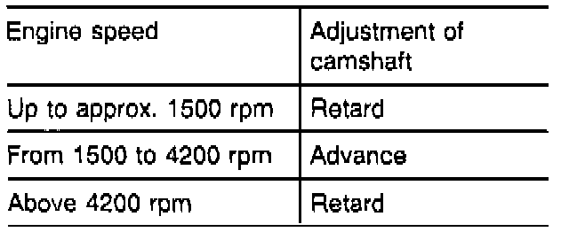 In transmission range "P" or "N" the camshaft advancement occurs at 3000 rpm.