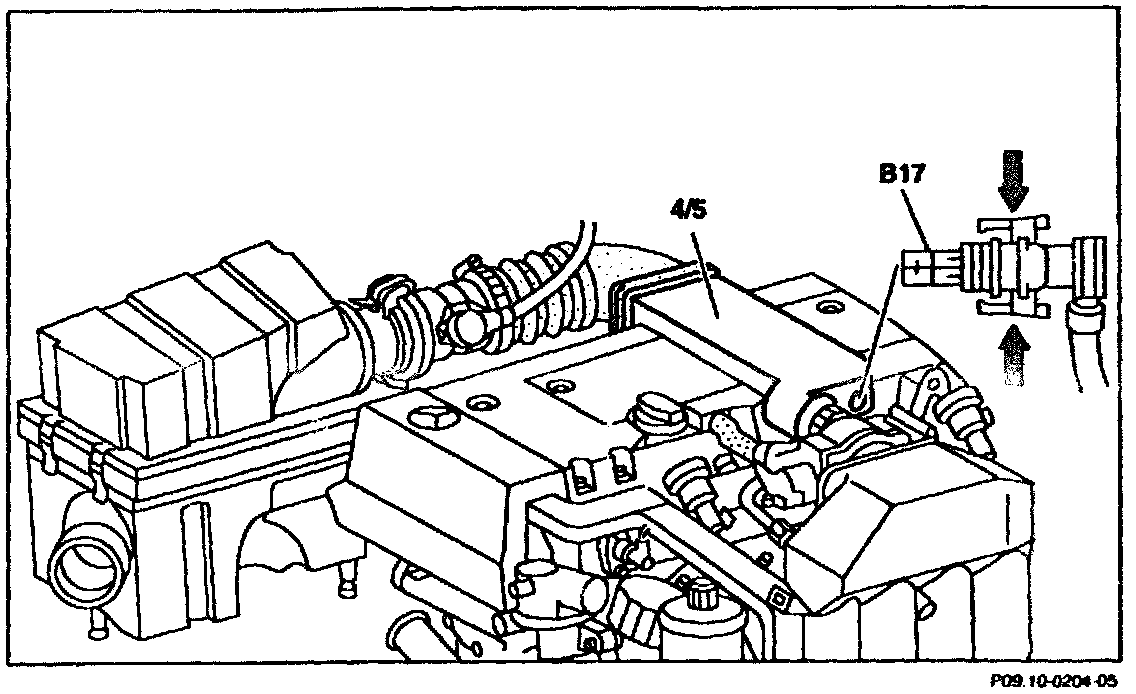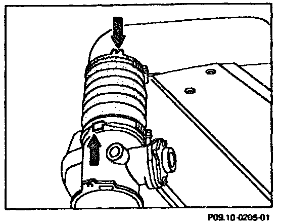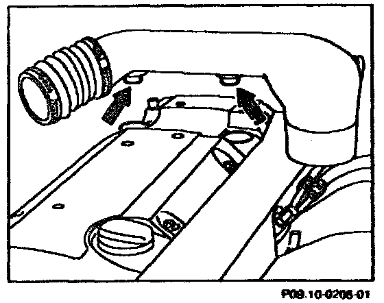 - When installing, press pins (arrows) of the air cleaner cross pipe into the rubber mounts of the valve cover as far as the stop.