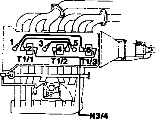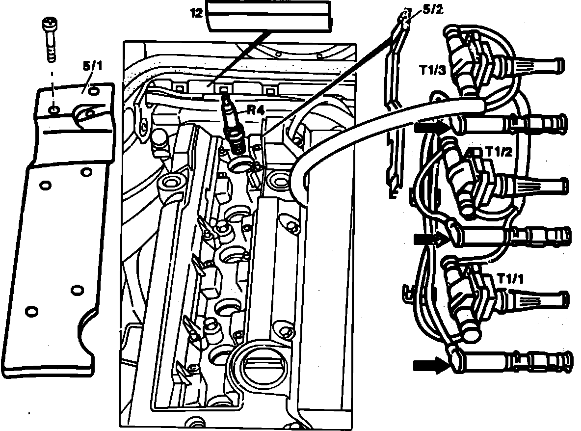 6. Remove ignition coils with wires attached (T1/1, T1/2, T1/3).