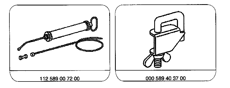 Unscrew Return hose (26), - screw on. Use clamp 000 589 40 37 00.